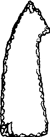 | 释义 | 勾形石器骨刀梗尖石刃。1978年采集于黑龙江省齐齐哈尔昂昂溪滕家岗子新石器时代遗址,现藏齐齐哈尔市文物管理站。白玛瑙质,通体压制而成,形似一带勾的平底石镞,从石镞一侧边锋的四分之一处向里再垂直向下压啄掉一长条状缺口,以便镶嵌在骨刀梗尖。石质半透明,压制技术高超;长4. 5厘米、底宽1. 5厘米、厚0. 4厘米; 一级文物。