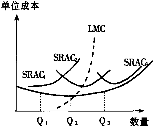图2 包络曲线Envelop Curve由所有短期成本曲线最低点轨迹构成的长期成本曲线。包络曲线最早由美国经济学家雅各布·瓦伊纳提出,认为在长期中企业总可以通过调整生产规模实现平均成本最低,即长期平均成本曲线是无数条短期平均成本曲线的包络曲线。 |