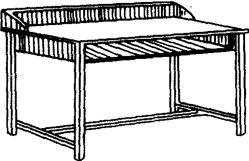 图2 教师演示桌 板,可放学生的书籍文具。❷ 学生坐凳 凳高440mm,可做成圆形或方形。学生上分组实验课时,每个学生都应坐着进行实验,以防学生来回走动影响课堂秩序。 ❸教师演示桌 供教师做演示实验和摆放仪器、模型等直观教具的专用桌。桌面应宽大,图2是一种普通的教师用演示桌。桌下也可安有横隔板,用以放置备用或用完的实验器材和教具等。演示桌面要能耐磨和耐酸碱腐蚀。 ❹ 仪器柜 存放化学实验仪器的专用柜,一般放置在仪器室和实验准备室内。图3所示的仪器柜,分上下两层,每层内放