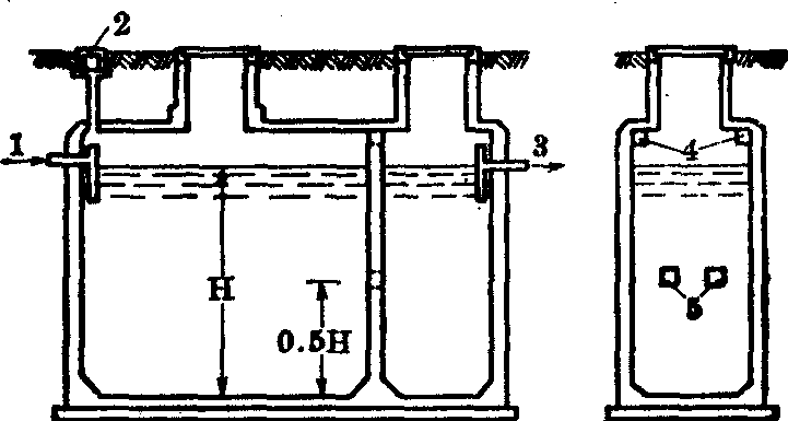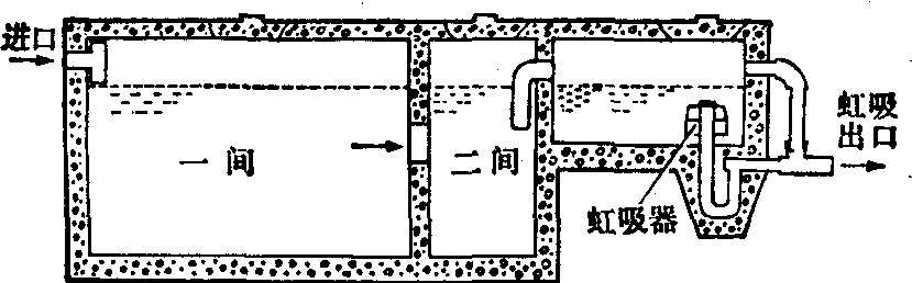 图3 化粪池设有间歇虹吸定量排水器 ☚ 室内排水设备 城市下水道 ☛ 化粪池 化粪池处理生活废水、粪便的特殊沉淀池。 ☚ 生活污水系统 排水系统组成 ☛ 化粪池septic tank |
