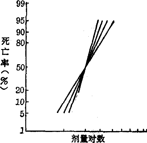 式中π1、π2、…、πn分别为混合毒物中n个单项毒物各占的比重,π1+π2+…+πn=1。LD50(1)、LD50(2)、…、LD50(n)分别为n个单项毒物的LD50。