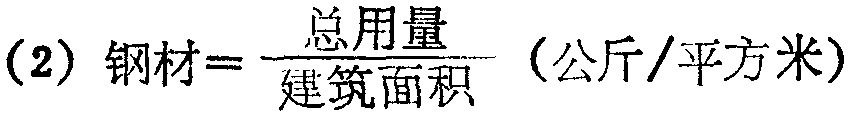 是评价建筑产品的经济指标。它表示每平方米建筑面积所耗用的水泥、钢筋、木材、砖瓦等主要建材的耗用量。其计算公式为: