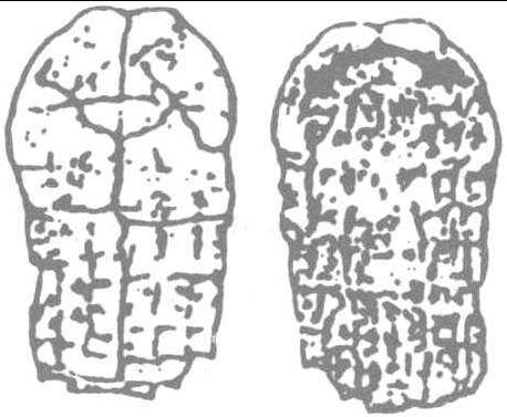 卜甲 赌具、占卜具 赌具、占卜具赌具:博具 彩具 奕具 局子 另见:赌博 占卜 卜问 ☚ 棋具 乐器 ☛ 卜甲古代占卜用的龟甲。多用龟腹甲,也有用背甲的。先钻凿、再火灼。据灼烧之裂纹推测吉凶,决定行止。刻上卜辞、验辞等内容。现见卜甲多出上于殷墟,郑州商代遗址、周原西周遗址、西安附近龙山文化遗址中也有发现。 卜甲占卜用的龟甲,主要是龟的腹甲,偶尔也使用龟的背甲。使用时,将腹甲加工成边缘整齐的弧形,背甲则加工为鞋底状。 卜甲的占卜过程与卜骨相同。 |