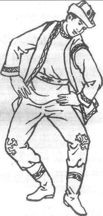 该舞男子动作主要是模仿马的走、跑、跳、跃,双臂反复的上下翻腕,双肩 一前一后交替摆动,既轻快又豪放;女子动作则优美舒展,尤其是从臂、手腕至指尖的连续揉推,别具特色。