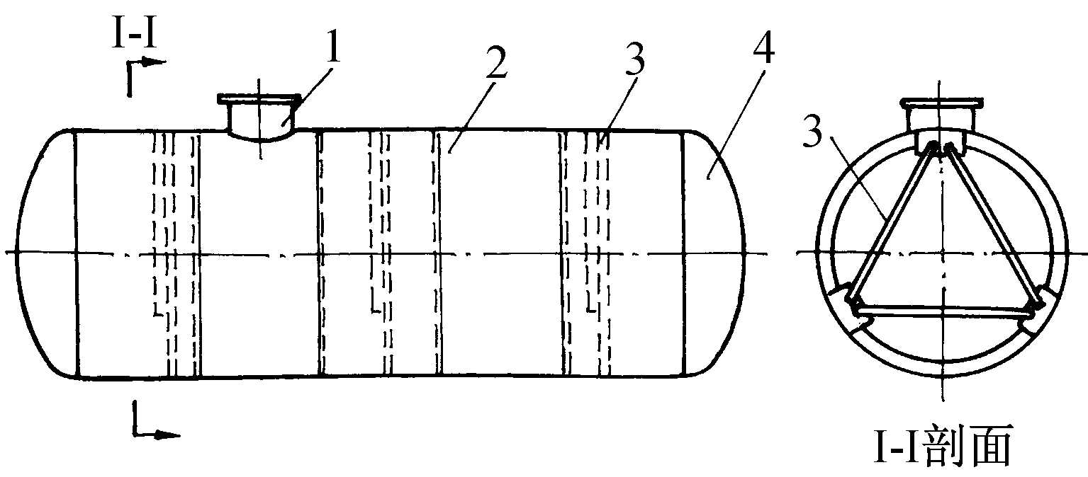 | 释义 | 卧式油罐 卧式油罐horizontal tank有水平罐体的圆柱形“储油罐”。由筒体和头盖组成。头盖又有平头盖和碟形头盖两种。前者承受内压一般不超过40kPa,负压不大于1kPa;后者用于储存挥发性极强的液化石油气或化工产品时,承压能力可达1.73MPa,储存汽油等挥发性油品时承压可达0.11MPa。容积常在2~400m3范围内,直径为1.4~4.5m,长3~25m。容积小于100m3的,常在工厂成批制造后运往工地安装。在地面上安装的卧式油罐,常用两个钢筋混凝土或砖石结构的鞍形支座支撑。当卧式油罐埋地安装时,应尽量安于地下水位以上,外壁涂敷沥青防腐层,罐内沿轴向设若干角钢制作的加强环和三角撑,以防止在外覆土壤压力下罐体丧失稳定而压扁。埋于地下水位以下的储油罐,有时需在罐下埋设混凝土块,用扁钢与罐体固定,以防止油罐抽空时浮起。与立式圆柱形油罐相比:卧式油罐能承受较高的正压和负压,减少油品蒸发损耗;便于工厂成批制造,提高制造质量;便于拆迁和运输。但是单位储油量耗用的钢材比立式圆柱形油罐多一倍以上,约为40~50kg/m3;卧式油罐储油量小,当某种油品总储量较大时,所需卧式油罐数量较多,占地面积也相应增加。卧式油罐常用于所需油品品种多、各种油品数量较少的小型分配油库、加油站和对机动性有较高要求的部队野战油库。此外,也常用卧式油罐储存挥发性极强的油品,如液化气等。