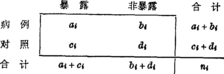 式中ua的意义同式(8),u值为按式(15)不施行连续性校正的计算结果。 分层抽样资料的分析: 为了排除性别、年龄或其他有关条件对拟观察因素效应的影响,常按有关条件对调查资料进行分层处理。设病例对照研究资料共分k层,第i层的结果为: