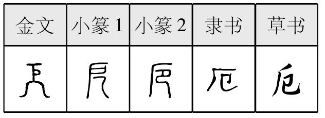 戹,金文象形,象车轭形,读è,本义为车轭,牛、马等牲畜拉车时驾在脖子上的木制器具。小篆1字形变为形声,从户,乙声。假借为险要之处、困苦、灾难等。厄,形声,小篆2从卪,厂(hǎn)声,本义读ě,用于“科厄”,树木的节;又读è,假借为险要的地方,引申为灾难、困苦、受困等。《异体字表》以“戹”为异体字。 【辨析】 ❶“厄”与“戹”不是等义异体字。 ❷厄/隘 见2页“隘”。厄 (è)五果切。科厄,木節也。从卩,厂聲。 厄 *厄ngwa[甲骨] [金文] [小篆] 《說文》: ,科厄, 木節也。从卪,厂聲。賈侍中說以為厄,裹也。一曰:厄,蓋也。(九篇上) 人被壓抑於低矮之處,不能伸身,處於厄運。 ☚ 戈 瓦 ☛ 00000855 |