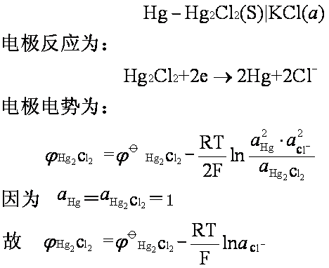 甘汞电极的结构 将纯汞置于底部,上面复盖汞和甘汞的糊状物,再充以氯化钾溶液而构成。甘汞电极表示式为: