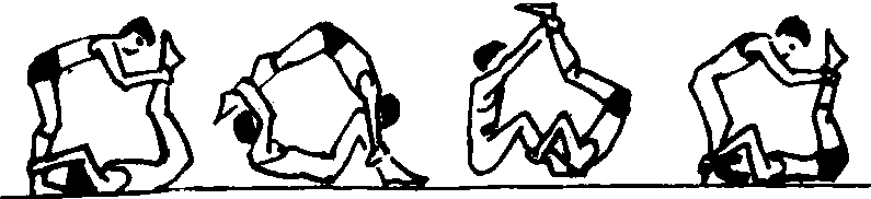 教学重点 ❶在掌远撑前滚翻的基础上再学习该动作。 ❷学会开始互握动作,练习中注意协调配合,两手始终抓握踝关节,低头不要过早,两臂支撑垫,缓冲屈臂。 ☚ 远撑前滚翻 后滚翻 ☛ |