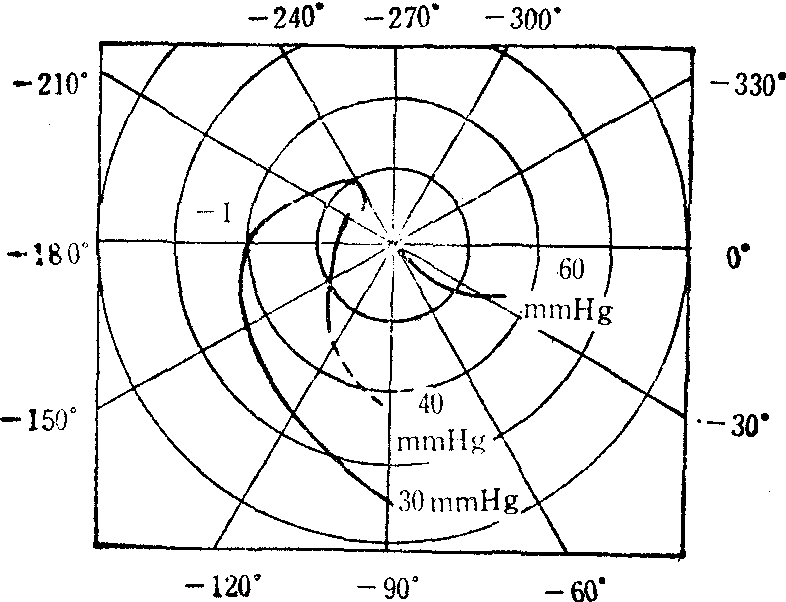 由此表可绘出乃氏图,如图3所示。一例狗脑中枢缺血反应开环频率特性如图4所示。在压力为30mmHg时,乃氏图通过(-1,0)点,因此闭环系统是不稳定的,这与用人工方法造成脑血流压力减到30mmHg时可引起血压的振荡(三级波)的结果相符合。开环频率特性试验方 法,已应用于研究 ![]() 肾上腺皮质激素、 血压调节系统、呼 吸控制系统、瞳孔 控制系统等,通过 实验求出相应系统 的传递函数,并分 析这些闭环系统的 稳定性。 图3 频率特性曲线