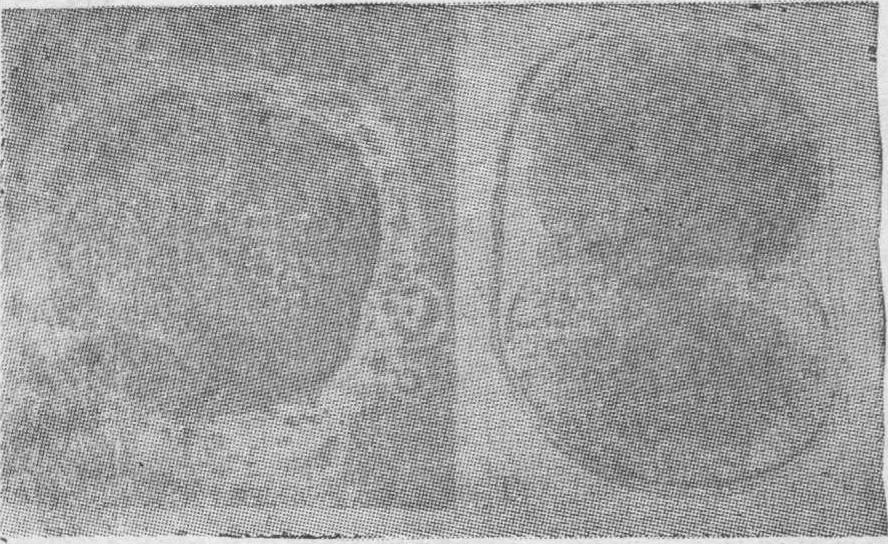 图2 受精过程图 1.第二次成熟分裂的纺缍体 2.次级卵母细胞 3.透明带 4.放射冠 5.第一极体 6.雌性原核 7.雄性原核 8.退化的精子尾 9.第二极体 10.染色体 11.原核融合 12.有丝分裂纺缍体 13.合子 14.卵周腔 精子入卵引起的带反应、皮质反应及受精膜的形成第一个精子进入卵内以后,透明带的通透性立即下降,变为具有抗拒精子溶素的能力,借以防止过多精子的进入,这一过程称为带反应。这种反应的速度在各种动物中各有不同,人、狗、羊和金黄地鼠的带反应较快,能有效地防止其他精子进入;大鼠、小鼠、豚鼠、猫和雪貂等的带反应比较慢,因而多精受精现象较普遍。透明带的这种反应据说与卵皮质颗粒释放的物质有关。海胆卵在精子进入处的皮质颗粒最先溶解,再从该处作波浪式扩散至整个卵皮质,此过程称为皮质反应,皮质颗粒的溶解物与卵黄膜融合,形成受精膜,同时,引起卵质收缩,排出液体,卵质表面形成透明膜层,在受精膜与透明膜层之间出现卵周腔,可见受精卵在其中作旋转运动。受精膜和卵周腔均有防止多精受精的作用。金黄地鼠卵皮质颗粒在精头接触时也出现溶解和沿卵黄膜扩散现象。人卵体外受精过程中也可见在透明带与卵黄膜之间形成充满液体的卵周腔(图2)。受精卵在其中作顺时针方向的旋转运动。 精子头部膨大及卵第二次成熟分裂 精子入卵后,精头即与尾部分离并作180°的旋转,吸取卵细胞质中物质,分解为许多核仁粒和染色质粒,逐渐膨大趋向于形成原核。此时卵细胞质由于皮质溶解、排水和一系列生理和代谢上的急剧变化,激动了分裂纺锤体的活动而完成了第二次成熟分裂,将第二极体排放至卵周腔(图1、图2)。用缩时显微电影记录兔卵体外受精的过程,显示精子与卵子遇合和穿过透明带的时间约为3小时; 入卵后至完成第二次成熟分裂的时间为2~5小时。 原核形成 精子头部在吸收卵细胞质和逐渐膨大过程中,染色质粒融合液化,边缘区出现活跃的蛋白质合成,最后形成为泡囊状的雄性原核。精子中段也解离,产生精星体,其线粒体及高尔基物质则散布于卵细胞质中,参与胞质配合。卵子在完成第二次成熟分裂后,分裂末期的一组染色体重组形成卵核,此时也增大形成为雌性原核,大小与雄核相等(人受精卵原核期的相差显微镜照片见图3)。电影记录兔受精卵二原核约在精子入卵后4~9小时内出现。