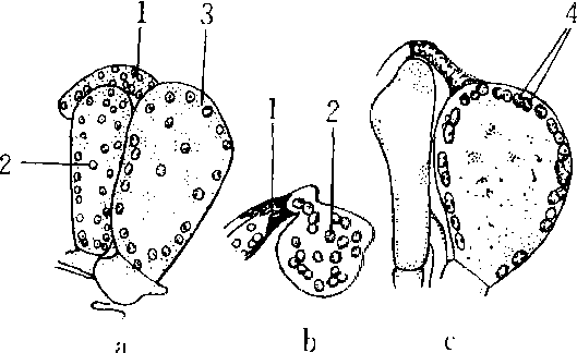 1.受精丝 2.雄器 3.产囊器 4.细胞核配对
