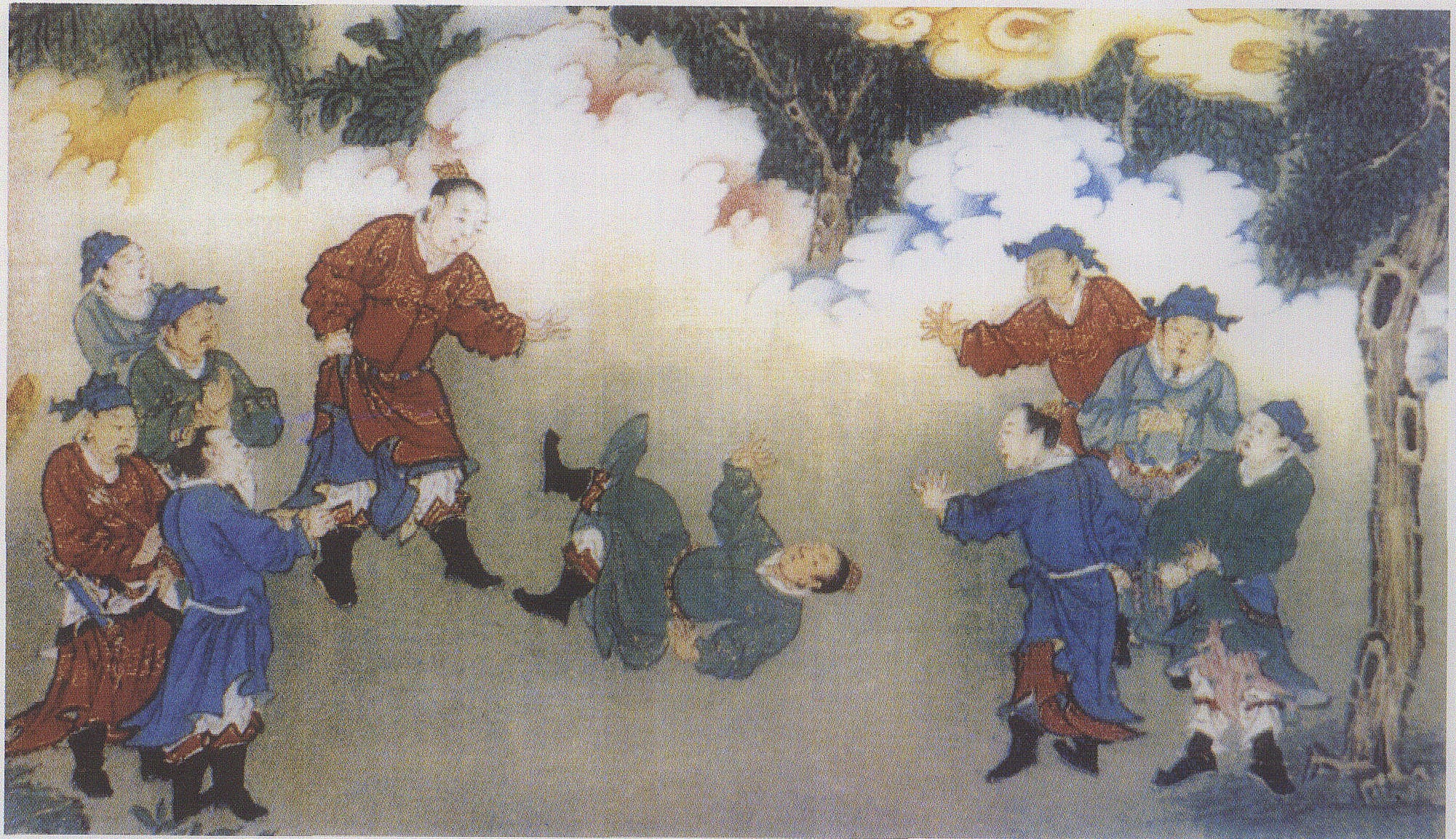 隋唐五代体育 隋、唐时期除继承发展南北朝盛行的各种与体育有关的观赏娱乐性项目(如舞蹈、杂技、围棋等)外,武艺、各种球戏、角抵及民间体育活动也得到复兴和发展。五代(907~960)时期军阀割据,连年战乱,体育活动逐渐衰退,但某些项目如击鞠、角抵等,仍流行。隋唐以“体貌丰伟”为美。因此,具有修炼形体功能的乐舞在南北朝的基础上有了进一步的发展,并有“太常寺”、“教坊”专司其事,是中国古代乐舞的极盛时期。舞蹈,可分为“健舞”和“软舞”,此外尚有花舞、字舞、马舞等。健舞与体育活动的关系尤为密切。如“剑器”舞,既是舞蹈又是剑术表演。杜甫《观公孙大娘弟子舞剑器行》描绘了剑光闪耀,舞姿雄健的生动形象。公元702年武则天始设“武举科”,推动了武艺练习的程式化,出现了“虚试无对,实用无验”的“花法”,士大夫对武艺操练更多地提出了审美要求,致使部分武艺的演练脱离了实战的要求,而成为没有实战意义的身体练习和表演。大大促进了军事武艺与民间武艺的分化,并逐步走上不同的发展轨迹。球戏活动在此期间得到迅速的发展,出现了以动物膀胱为内胆,以八片皮革缝制成的充气球,促进了蹴鞠技术提高和活动方式的演变。东汉末年流行的击鞠(马球)此时更为盛行,在王公贵族和士大夫中成为时尚。击鞠在部分妇女中也得到一定的开展。公元710年在长安还曾举行过与吐蕃的友谊赛。相扑、围棋、百戏、骑射、养生等都获得很大发展,特别是老年保健术受到格外的重视。