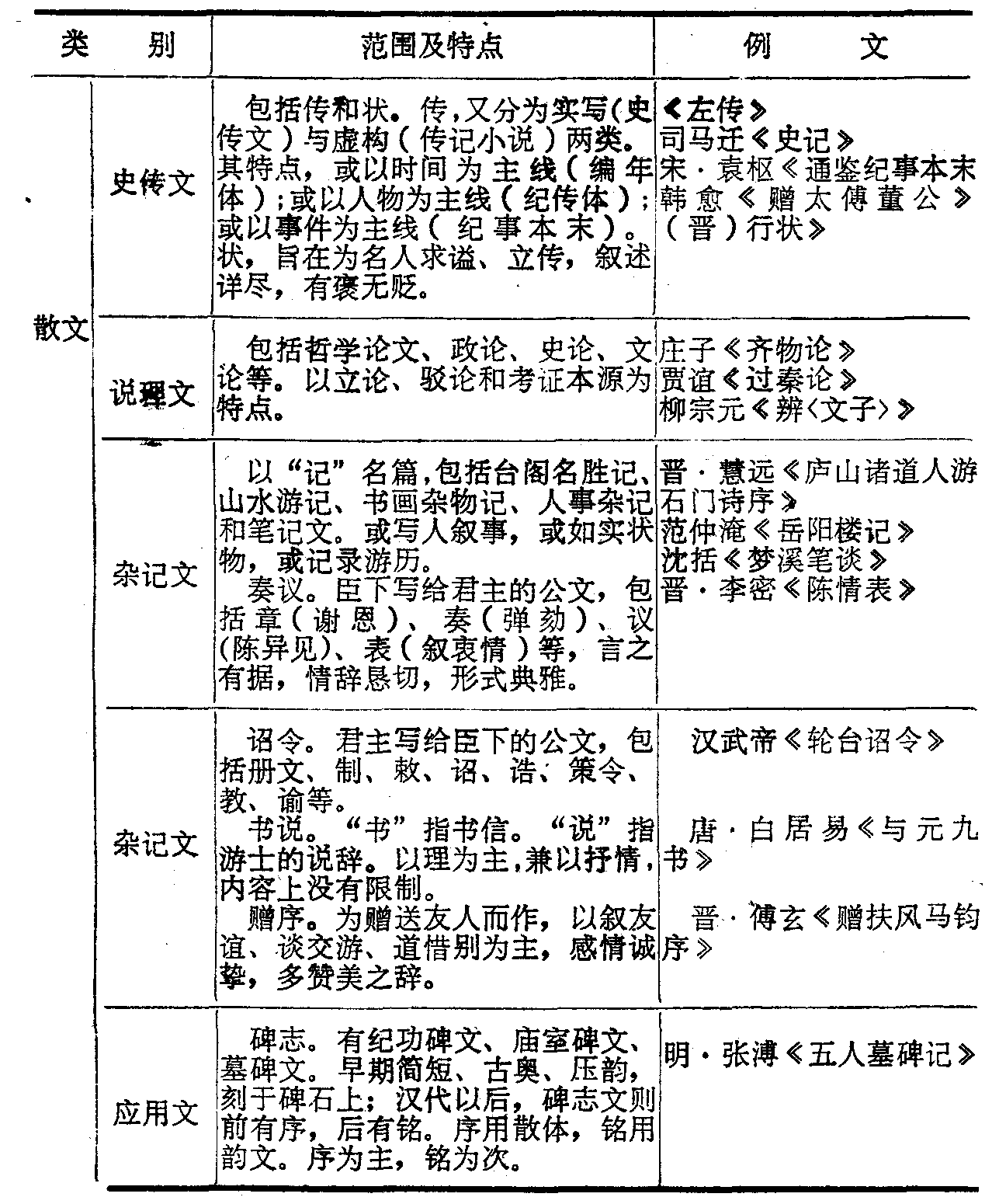 中国古代文体分类表