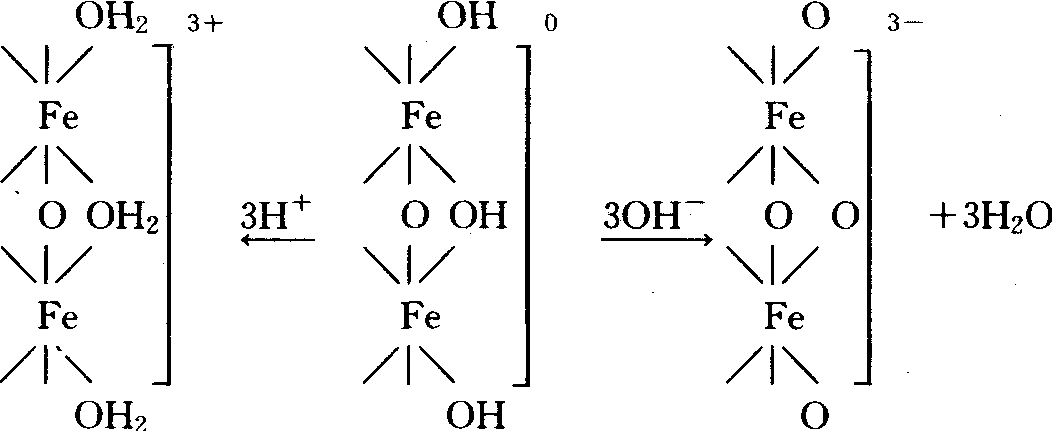 土壤胶体中所有氧化物、水合氧化物和氢氧化物以及水铝英石类矿物的表面均属水合氧化物型表面,都能产生可变电荷。以氧化铁为例,示意如下: