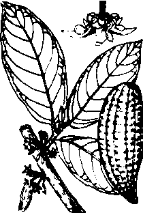 可可 可可 可可Theobromacacao双子叶植物,梧桐科。原产南美洲热带的一种常绿乔木。种子含有蛋白质、脂肪、糖类、维生素B1、B2和少量可可碱。可榨油,也可加工磨碎制成可可粉。可可粉又香又苦,能作为一种特殊饮料,也是制作巧克力糖的主要香料。有强心、利尿的功效。我国云南、海南、台湾等省已有栽培,是重要的经济植物。