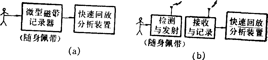 可行走病人心电监护系统有多种类型: ❶无线遥测发送一离身接收记录及回放系统; ❷直接检测记录一离身回放显示系统; ❸模拟式磁带记录器一模拟计算机快速回放系统; ❹数字式磁带记录器一数字计算机回放系统; ❺佩带式心电智能监测系统。其中,前两类不具备分析功能,回放时间长;前四类的回放分析都是回顾性的,记录与诊断之间延误时间长,连续记录的时间最长不超过26小时,因而不能满足临床要求。 佩带式心电智能监护系统由患者随身佩带,能实时检测和分析心电信号,判断心律失常信号,并在发现心律失常后能自动以声、光报警,同时启动磁带记录器进行舍取性的记录,或通过电话系统将异常心电信号传送到中心医院的计算机系统,进行处理和诊断;亦可通过佩带的监测器内的微型发射装置将突变的心电数据发送给离身的收录机,进行记录和回放分析。佩带式心电智能监护装置的方框图如图2所示。这种系统的磁带利用率很高,若电极贴得好,佩带和连续监测时间可长达4~7天,更能可靠地捕捉偶发性心律失常信号,提高监护功能,以适应临床的需要。