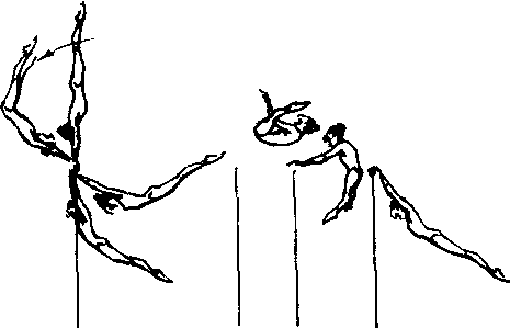 | 释义 | 叶格尔空翻 叶格尔空翻Jaeger单杠高难度飞行动作之一。即后摆上分腿屈体前空翻抓杠成正握悬垂。为前德意志民主共和国运动员叶格尔首创,并成功地用于世界性比赛。是20世纪70年代中期在单杠上开辟空翻再握类型动作的先驱。它的问世立即引起国际体坛关注,其后“德尔切夫空翻”、“京格尔空翻”随之出现,对单杠飞行技术的发展有积极推动作用。技术要点:起摆上至手倒立后前翻至杠下垂面的技术基本上同“猫跳”,但打腿和脚面下压动作应稍迟些进行,因此向下“沉肩”也相应稍晚一些做。经杠下顺势撩腿应用脚面发力向后上方进行,注意低头留肩。当髋部上升到杠后水平面时,脚面用力上顶撒手直体进入“倒飞”。随即分腿屈髋,梗头跟肩进行翻转,两臂立即前伸握杠,并保持肩带肌群适度紧张并腿后伸进入悬垂。当熟练掌握振浪技术后,可在滑车吊带保护下直接进行练习。当动作定型后,可在海绵坑的单杠上脱保进行,登陆时,保护者位于杠下,必要时抄扶胸腹帮助减慢下落速度。