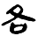 ɡè表意,甲骨文从夊从凵,夊为倒止(趾),凵是坎的本字,表示趾至坎(坑)内,凵又作口。(一说从凵或口,凵或口为古代穴居,表示返回穴居。)小篆字形稍变,隶定为“各”。本义为到来,假借为代词(指某个范围的所有个体,相当于“每个”)、副词(表示分别做某事或分别具有某种属性)等。
