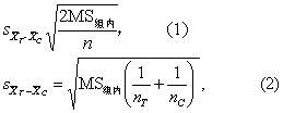 式中MS组内为方差分析表中的组内均方,式(1)中n为每组例数。
