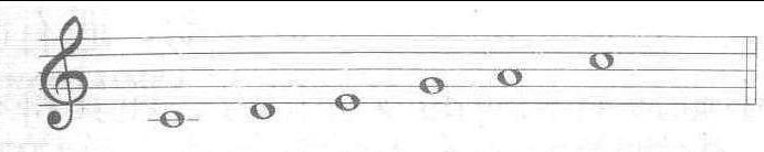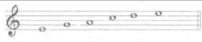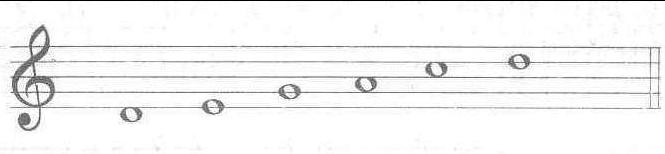 当五种五声调式的宫音为同一音级时,即称为同宫系统五种五声调式。其宫音音高相同,各调式音级音高相同,调式不同,主音不同。例如C宫系统五种五声调式:例:(1)C宫调式 (2)D商调式 (3)E角调式 (4)G徵调式 (5)A羽调式