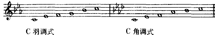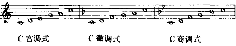 在五声调式和五声性七声调式中,主音相同而调式不同,称为同主音调,也有人称为异宫系统调。 例 ❸:以C为主音的各调式: