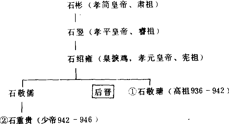 后晋五代之一,沙陀人石敬瑭所建。敬瑭原为后唐太原尹、北京(太原)留守、河东节度使,身居要地,手握重兵,想谋取帝位。清泰三年(936)认契丹主耶律德光为父,并割让幽云十六州,岁贡帛三十万匹,因此,契丹主在太原册立石敬瑭为皇帝,国号晋,史称后晋。改元天福。同年,石敬瑭攻入洛阳,灭后唐,迁都开封。后晋疆域,除幽云十六州割让给契丹外,大体同于后唐。天福七年(942),石敬瑭病死,侄石重贵继位,史称少帝或出帝。重贵在大臣景延广等影响下,奴事契丹的态度有所改变,契丹于开运元年(944)、二年二次南侵,均为后晋军士击退,三年,重贵任其姑父杜威为元帅,抵御契丹,杜威却与契丹勾结,引契丹军南下攻入开封,耶律德光在开封称帝,国号为辽,后晋亡。次年,契丹军北撤。后晋经二帝,凡十二年。 |