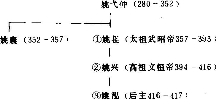 后秦十六国之一。公元384年,羌族贵族姚苌在渭北羌、胡及西州豪族支持下自称万年秦王。386年称帝,都长安(陕西西安)。为区别历史上其它以“秦”为号的朝代及政权,史称后秦。苌子兴在394年击灭前秦。 《十六国疆域志》载其全盛时“南至汉川,东逾汝颖,西控西河,北守上郡”。据有今陕西、甘肃、河南、宁夏诸省及山西的一部分。重视汉文化,提倡佛教。吏治较好,经济有所恢复。417年为东晋所灭。历三主,三十四年。 |