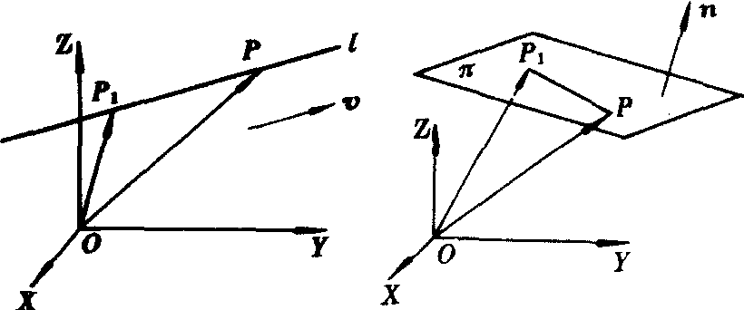 又如图3所示,平面π过已知点P1,且垂直于已知向量n. 在平面π上任取点P,则 (P—P