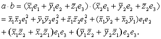 这表明,a · b是a和b的坐标的齐二次式,任意一个关于 的齐二次式都可以看作是两个向量在某一仿射坐标基底下的内积. 并且,当仿射坐标基底取得最好 (正交) 时,相应的齐二次式最简单.❺ 两向量的向量积的坐标表示