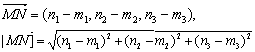 设a= (x1,y1,z1 ),b=(x2,y2,z2),c= (x3,y3,z3). ❶ 两向量和的坐标等于两向量相应坐标的和. a+b= (x1+x2,y1+y2,z1+z2). ❷ 两向量差的坐标等于两向量相应坐标的差. a—b= (x1—x2,y1—y2,z1—z2). 由于起点为M(m1,m2,m3),终点为N (n1,n2,n3)的向量 N与N-M相等,从而