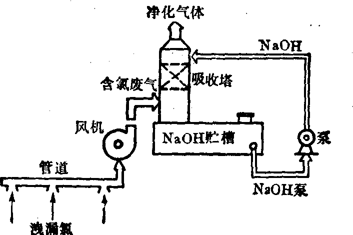 | 释义 | 含氯废气净化 含氯废气净化在氯碱工业中,食盐溶液电解时经常有氯逸出,为了防止对人体的危害,必须对含氯废气进行净化处理。