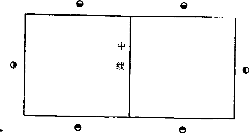 场地 在室内空地进行。将6—8张平面课桌摆成一个长方形, 中间用粉笔画成一条中线。