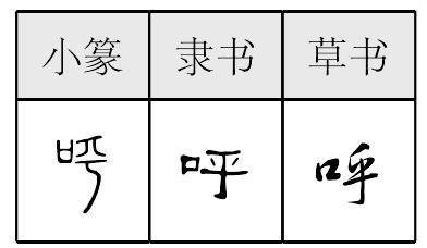 ❹ 大声疾呼|登高一呼|奋臂一呼|夹道欢呼|攘臂一呼|一命呜呼|振臂一呼 呼 金文; 篆hū[口(意符)+乎(呼本字,聲意符)→呼(《説文》:呼,外息也。從口,乎聲。”生物體把體内氣體排出〈呼氣〉。引申爲稱呼〈直呼其名〉;大喊〈呼叫,呼口號〉;象聲字〈北風呼號〉。)] 《詩經·大雅·蕩》:“式號式呼,俾晝作夜。”(又是大喊又大叫,竟把晨昏弄顛倒。) 呼虖;嘑;謼hū(8画)