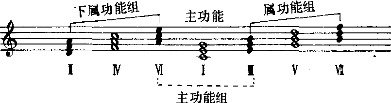 | 释义 | 和弦的功能 和弦的功能调式中的所有音级均可作为根音来构成和弦。其中以主音为根音构成的三和弦称为主和弦,以属音及下属音为根音的三和弦分别称为属和弦与下属和弦,这三个和弦是调性中3种主要功能(稳定的主功能与不稳定的属功能及下属功能)的代表,因此是构成一个调性的骨架和弦,称为正三和弦。其他各级三和弦均称副三和弦,按其根音与组成音在调式音级中的作用、和弦的倾向性及正三和弦的共同音关系,分别具有不同的调性功能作用:Ⅱ级与Ⅵ级和弦具有下属功能,与下属和弦构成下属功能组;Ⅲ级与Ⅶ级和弦具有属功能,与属和弦构成属功能组。由于Ⅲ级及Ⅵ级和弦与主和弦有两个共同音,和弦关系较为密切,所以有些和声学著作认为它们也具有主功能,而与主和弦一起构成主功能组。
