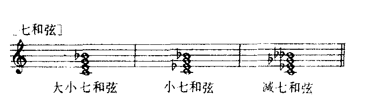 | 释义 | 和弦的种类与性质 和弦的种类与性质根据3度叠置原则构成的和弦可分为如下几种:由3个音组成的称为三和弦;4个音组成的称为七和弦;5个音组成的称为九和弦;6个音组成的称为十一和弦;7个音组成的称为十三和弦。其中常用的是前3种各和弦中的最低音称为根音,上方各音按与根音的音程关系分别称为3音、5音、7音、9音等。根据和弦音之间音程性质的不同,三和弦又可分为4种:大三和弦(大3度及纯5度)、小三和弦(小3度及纯5度)、减三和弦(小3度及减5度)与增三和弦(大3度及增5度);七和弦可分为7种:大小七和弦即属七和弦(大二和弦加小7度)、小七和弦(小三和弦加小7度)、减七和弦(减三和弦加减7度)、半减七和弦(减三和弦加小7度)、大七和弦(大三和弦加大7度)、小大七和弦(小三和弦加大7度)与增大七和弦(增三和弦加大7度);九和弦一般在属七和弦上方添加9度音构成,可分为大九和弦(属七和弦加大9度)与九小和弦(属七和弦加小9度)两种。上述各类和弦中以大、小三和弦与七和弦中的前3类及属七和弦最为常见,其他的运用较少。