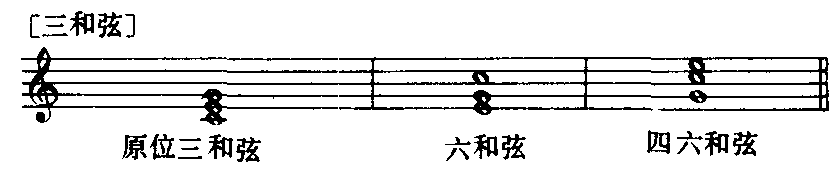 根据和弦低音位置的不同,和弦的形式存在着原位与转位的差别:凡低音位置为根音者称原位和弦;凡低音位置为其他组成音者则称转位和弦。三和弦共有两种转位形式: 三音位于低音时为第一转位,称六和弦;五音位于低音时为第二转位,称四六和弦。七和弦共有三种转位形式:三音位于低音时为第一转位,称五六和弦;五音位于低音时为第二转位,称三四和弦;七音位于低音时为第三转位,称二和弦。九和弦及十一、十三和弦很少使用转位形式。转位和弦的名称源出于“数字低音”。在三和弦中,以低音至主音及三音的音程来计算(五音省略不计,低音与三音相重者不计),如第一转位,低音为三音,不计,而低音至主音为6度,故称六和弦;第二转位,从低音至主音为4度,从低音至三音为6度,故称四六和弦。在七和弦中,以低音至主音及七音的音程来计算(五音、三音省略不计,低音与七音相重者不计),如第一转位,从低音至主音为6度,从低音至七音为5度,故称五六和弦,余类推。