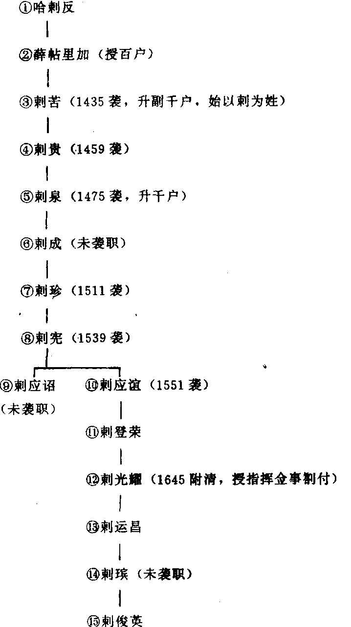 | 释义 | 哈剌反明初土族第一代剌土司。青海西宁州人。明洪武四年(1371)附明,授充总旗。其孙剌苦功升副千户,始以剌为姓。曾辖有“土舍”、“土民”100余户,男女200余人。居地在今民和县泉里剌家庄,上剌庄。附剌土司世系(居地民和县):(表见右面)