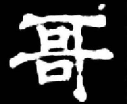 哥 金文; 篆gē[可(意符)+可(聲符)→哥(《説文》:“哥,聲也。從二可。古文以爲謌字。”哥,親戚中同輩而年齡大於自己的男子;稱呼跟自己年齡相仿的男子,表示親熱。看來,哥也是一個假借字,它是“歌”本字。)][晉] 傅玄《節賦》:“黄鐘唱哥,九韶興舞。” [明] 凌濛初《二刻拍案驚奇》(卷三十五):“這個是錢朝奉家哥子。” 哥gē(10画)