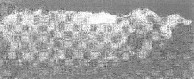 唐代玉器,清宫旧藏。杯高6. 8厘米,口径12×9.5厘米。器呈椭圆形,平足。杯外雕上下两排小云头,云头为三歧骨朵式,用起写法琢制,边缘锋锐。云心凹下,云头上端略高出杯口。杯把为四歧流云式,杯把中部有涡纹,后部用较粗的阴线雕出波状流云。此种形制的杯亦称云形杯。此杯云纹与盛唐碑头雕刻的多歧骨朵云相似,故此杯应是盛唐时期宫内玉作之制品,存世仅此一件,极为珍贵。