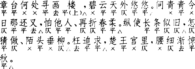 | 释义 | 啭林莺 啭林莺高明 《琵琶记》 ![]() 全曲八句:7△,6△。7△,7△。4△,7△。3△,9△。 其二 梅鼎祚 《玉合记》 ![]() 全曲九句:7△,6△。7△,7△。4△,7△。3△,4,5△。第一式和第二式的差别,在末句句式不同:一作上三下六式九字一句,一作四字、五字二句。因之曲谱上出现了许多异名。第一式异名有二:冯梦龙改名为〔集贤郎〕,谓〔集贤宾〕犯〔二郎神〕,见《南词新谱》说明;《南词简谱》改名为〔集贤猫〕,谓〔集贤宾〕犯〔猫儿坠〕。第二式异名亦有二:《新谱》用《玉合》词,改名〔啭莺儿〕,谓〔啭林莺〕犯〔黄莺儿〕;《简谱》用《金雀》词,改名〔集贤莺〕,谓〔集贤宾〕犯〔黄莺儿〕。这四个异名都作集曲看。其实第二式是第一式的发展。第一式始见于《琵琶记·两贤相遘》、《香囊记·问卜》。《牡丹亭·闹殇》、《红拂记·杨公完偶》从之。第二式始用于《浣纱记·别施》,《鸣凤记·林遇夏舟》、《明珠记·煎茶》、《玉合记·嗣音》、《春芜记·瞥见》、《焚香记·卜筮》、《金雀记·合雀》从之。新旧两式之异,在于末句,而皆名〔啭林莺〕,原不必改题为集曲。《新谱》说得好:“予谓此是古传奇旧曲名,何必辄改。况〔啭林莺〕原自浑成一曲,亦不必更为剖析也。今仍旧。”所有异名,今均不取。 ☚ 集贤宾 莺啼序 ☛ |