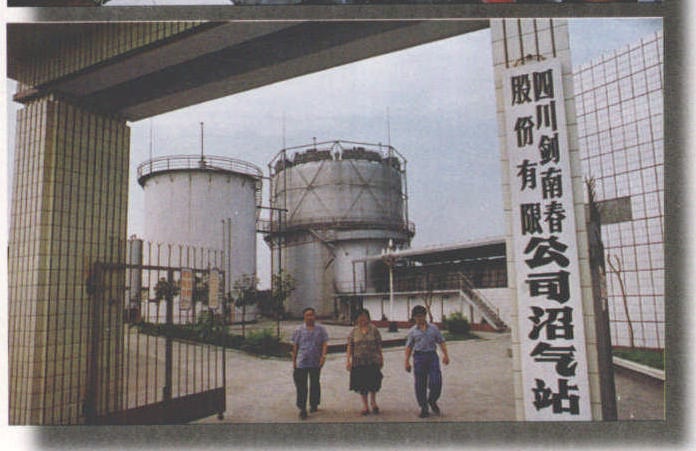 2全省已建成处理酒厂、 糖厂、 肉联厂、食品加工厂、 畜禽场等高浓度有机废液的大中型沼气工程53处, 在治理污染、回收能源方面发挥了重要作用。 图为四川剑南春股份有限公司的大型工业沼气工程。