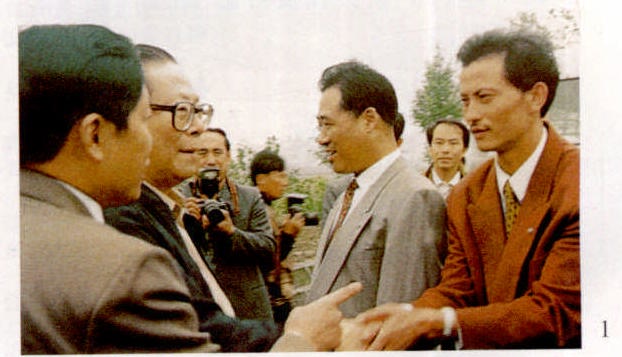1.江泽民总书记与金牛乡党委书记邬世贵亲切握手。