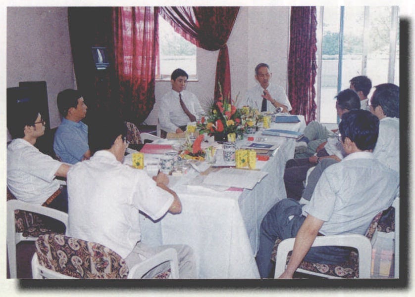 董事长张寿宁(中)、副董事长张炜(左一)在组织召开董事会。