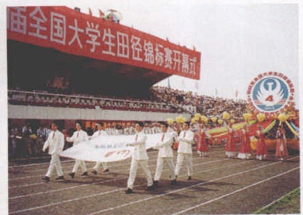 7 1995年8月,第四届全国大学生田径锦标赛在西南交通大学举行,100多所高校的1000多名运动员参加。