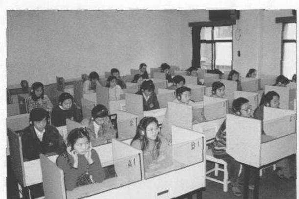 从日本引进的具有90年代先进水平的WE—7900语言设备——多功能语言实验室。