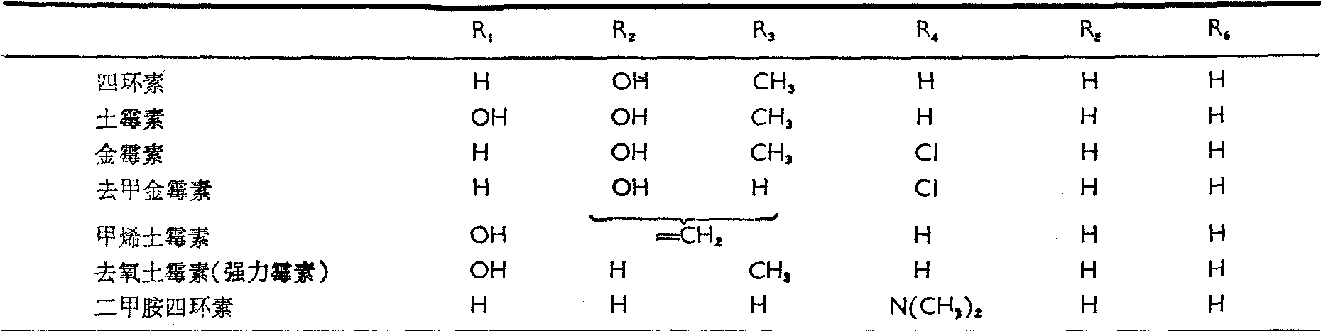| 释义 | 四环素类抗生素 四环素类抗生素四环素类抗生素是指具有相同四元稠环基本结构的一组广谱抗生素,临床上使用极为广泛。常用的有天然生物合成的四环素、土霉素、金霉素、去甲金霉素及半合成甲烯土霉素、去氧土霉素(强力霉素)和二甲胺四环素,结构如下: