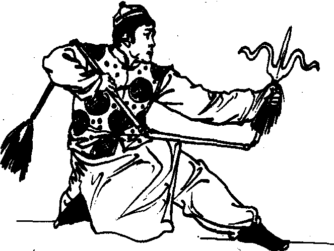 武术器械镋的一种。其用法和三节棍有些相近,但也有许多不同之处。它不同舞花,以抡、劈、砸、扫、挡、挂、抹、刺、摇转为主要方法,而且充分利用了器械的特点。第一节上的“蛇”形横弯刀,其形如翅,两面有刃,前尖有锋刃,二节和三、四节都有铁环相连,第四节末端有硬木制做的八楞小锤,用来劈砸。使用起来,挡、刺、进攻防守均很方便,且快速勇猛,刚劲有力。它可以单练,也可以和枪、棍、大刀对练。使用时软中有硬,硬中有软,可长可短,收放自如,得心应手,威力颇大。