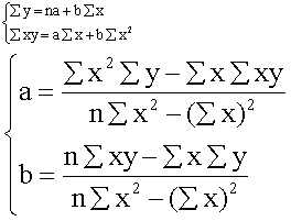 根据预测对象与其影响因素之间的回归分析,对具有回归关系的变量,建立回归方程式,据以进行预测的方法。主要有一元回归分析预测法、二元 (或多元) 回归分析预测法等。其中: 一元回归分析是在确定一个自变量和一个因变量之间具有明显相关关系的基础上,配合回归线,建立回归方程式进行预测,如Y=a+bx,再根据最小平方法,求得a、b待定系数的标准方程组为: