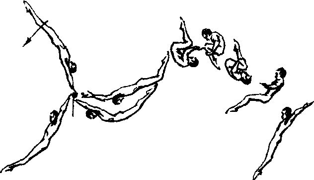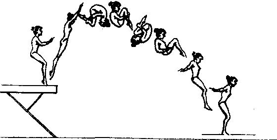 侧立于木上,助跑或用动作连接做,当用力推手跳转180°时,双脚迅速用力蹬木跳起,两臂向上摆,同时上提肩,两腿屈膝,向胸靠紧,此时两臂与头和肩积极引向膝部,团身抱膝向前上方腾起,边翻转边团紧身,加快翻转速度翻转2周,当第2周头向上时,两腿迅速前下伸,立上体,当着垫时,收臀、紧身成半蹲姿势,两臂上举或侧上举,保持稳定。 用侧手翻外转体90°或后手翻转体180°等动作来接,撑手蹬木要敏捷有力,转体要快速而充分,以便获得良好的腾空高度和翻转速度。 初练时,可在高器械上往海绵坑里翻,逐渐过渡到由高木往垫子上翻,特别注意落地时的保护,否则易伤膝部。 帮助者立于木侧的保护台上,两手扶练习者的腹背部,快速向上托送,帮助腾空与翻转,当着垫时,两手扶其腰部,帮助缓冲与稳定 ☚ 团身(屈体)前空翻下或加转体180°下 直体前空翻下或加转体180°下 ☛ |